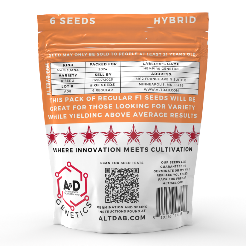 Our Regular F1 hybrid seeds guarantee genetic consistency, giving you the assurance of reliable plants every time you cultivate. Elevate your grow operation with Kiseru and unlock the potential for extraordinary yields and exceptional quality.